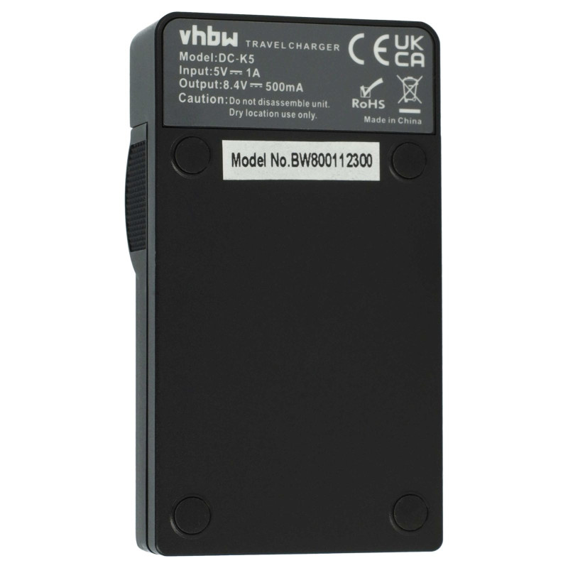Izredno praktična polnilna postaja VHBW za polnjenje baterij za fotoaparate/kamere, ki deluje preko priključka MicroUSB. Polnilno postajo z USB kablom povežemo na vsak napajalnik za mobilni telefon oz. tablični računalnik, ki deluje prek priključka MicroUSB. Vsebuje LED statusni indikator, ki nam kaže stanje polnjenja baterije. Priložen je tudi USB kabel dolžine 40 cm.