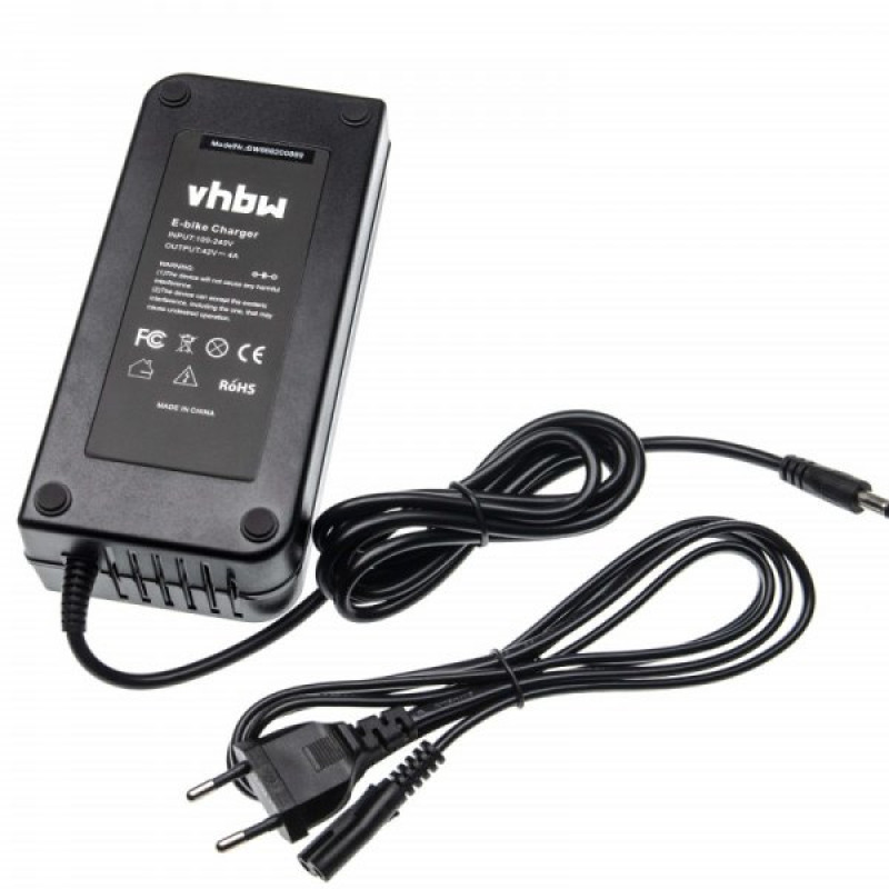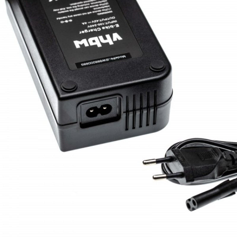 Kakovosten polnilec za električna kolesa proizvajalca VHBW z zaščito pred prepolnjenjem, nadtokovno zaščito, temperaturno zaščito in certifikati CE in RoHS. Polnilec je opremljen z LED indikatorjem, ki prikazuje status polnjenja.