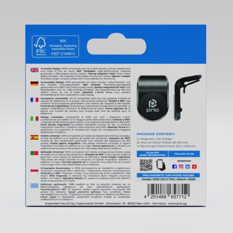- 1x Univerzalni magnetni nosilec za avto za telefon Prio