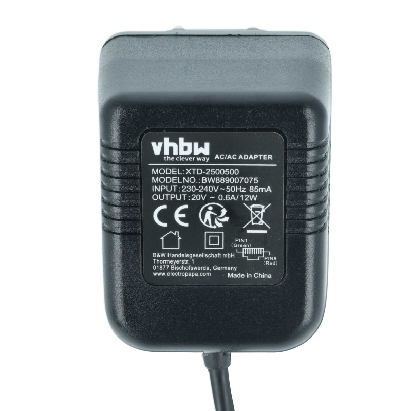 Kvaliteten polnilec proizvajalca VHBW z zaščito pred prepolnjenjem, nadtokovno zaščito in temperaturno zaščito ter certifikati CE in RoHS. Opremljen je z LED lučko, ki prikazuje stanje polnjenja. Dolžina kabla je cca. 3,00 m.